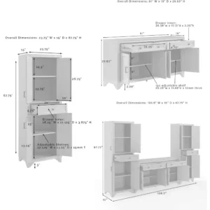 3 Piece Sideboard & Sideboard Set, Modern Farmhouse Design Complements Traditional Décor 15″D x 108.5″W x 67.75″H, Sideboards