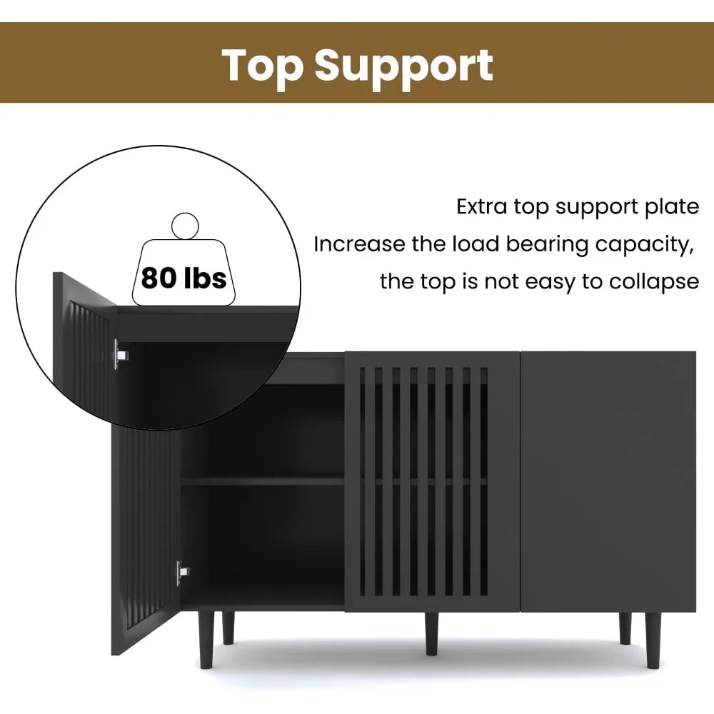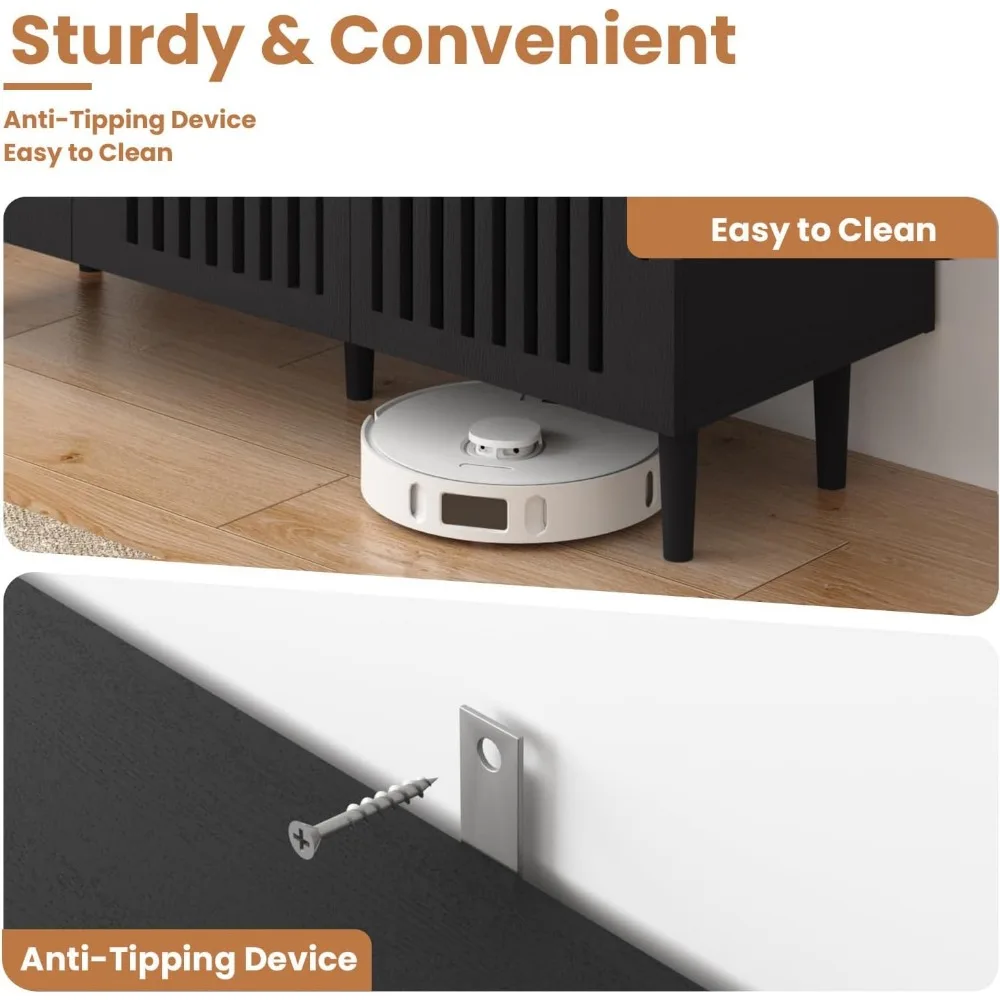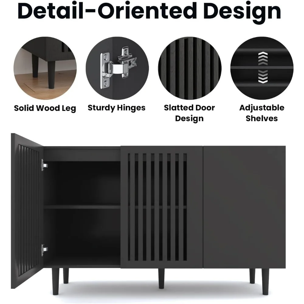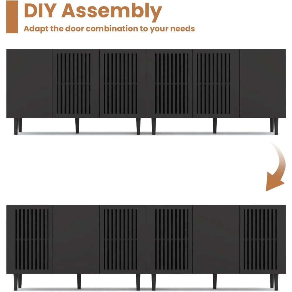 Modern Storage Cabinet, 94.4″ Buffet Cabinet with 3 DIY Doors and Adjustable Shelf, Sideboard Coffee Bar Cabinet with Solid Wood